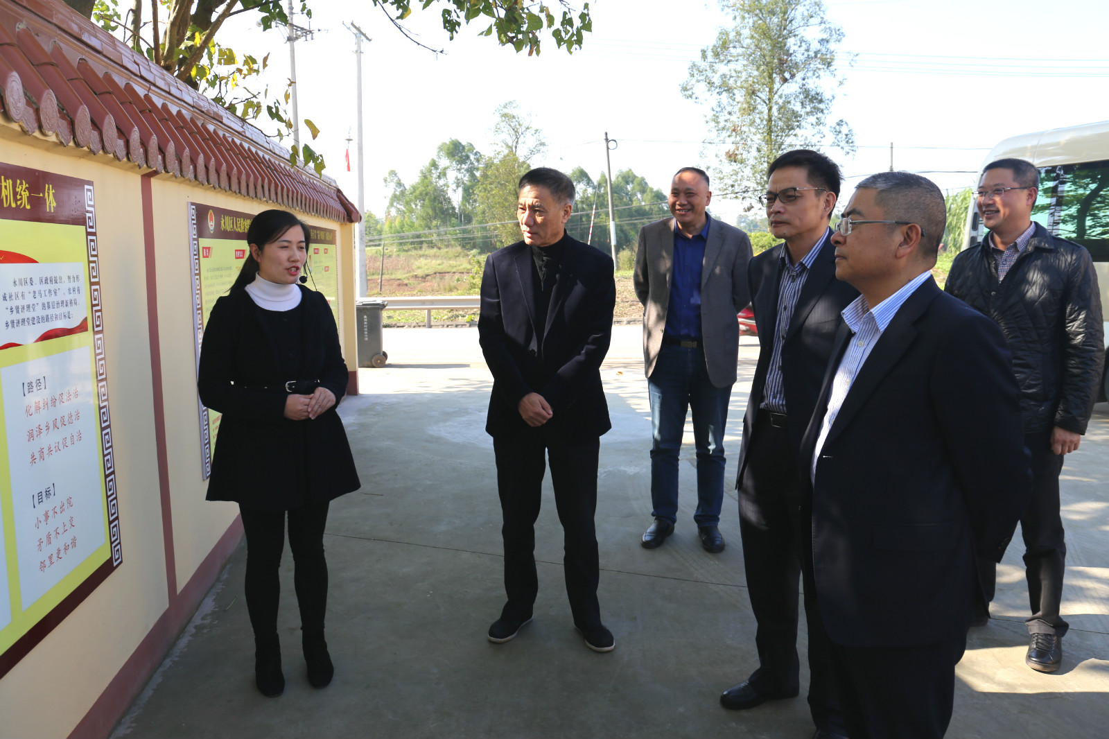 当天下午,调研组一行先后来到陈久述乡贤评理堂、石松律师事务所、中山路司法所,通过实地查看、听取汇报、观看PPT等方式,了解我区司法行政工作和“七五”普法工作情况。座谈会上,调研组观看了法治茶话会专题片,听取了区司法局主要负责人司法行政工作报告以及我区“七五”普法中期检查工作的汇报。